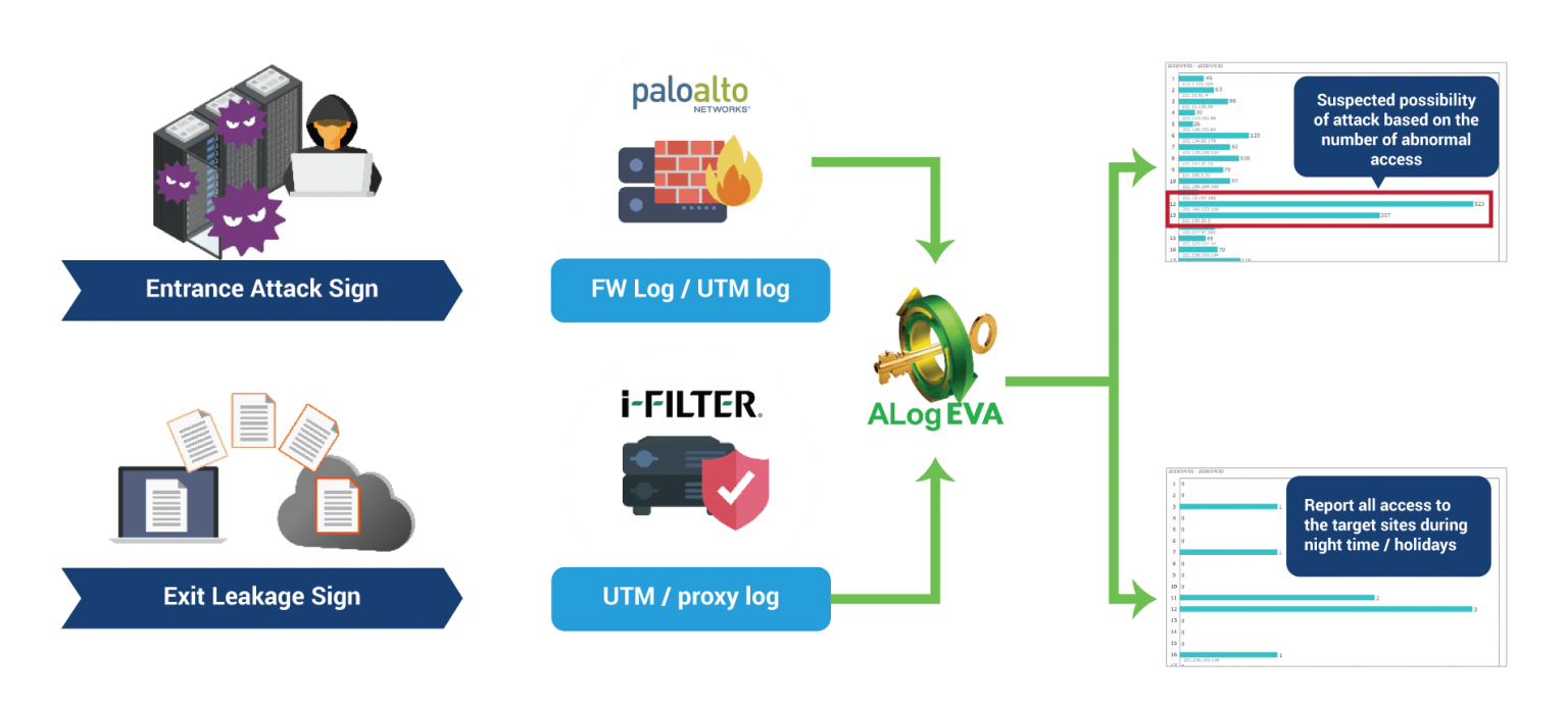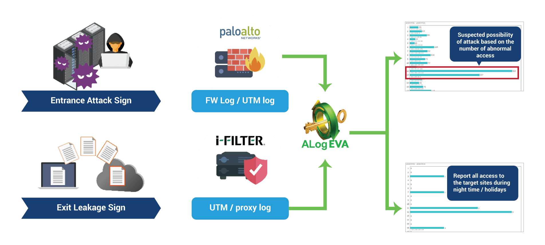 For Cyber Attack Measures, the existing firewall and proxy logs were export to EVA for: