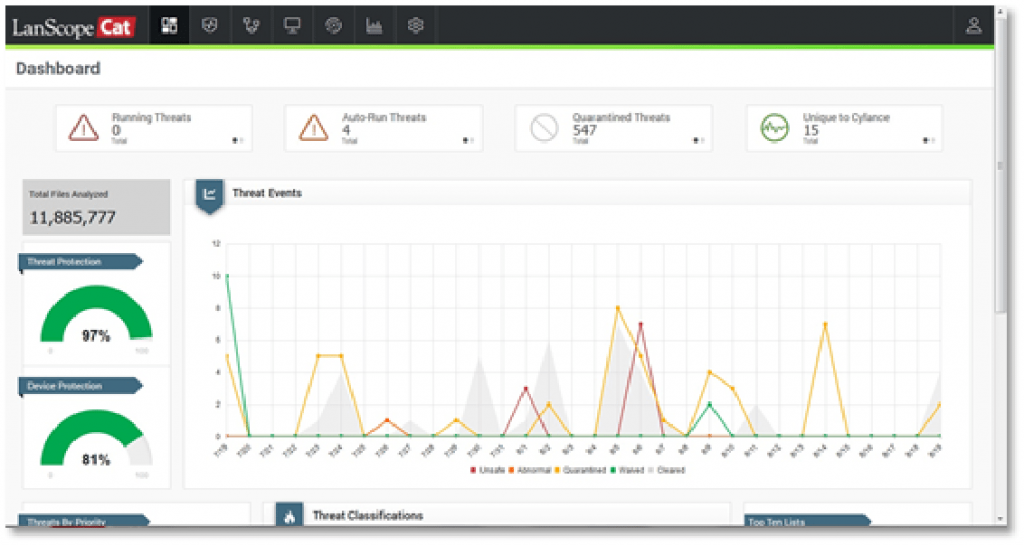 AI-based predictive defense detection. Signature-less, hence no daily updates are required and less burden is placed on administrators and employees.